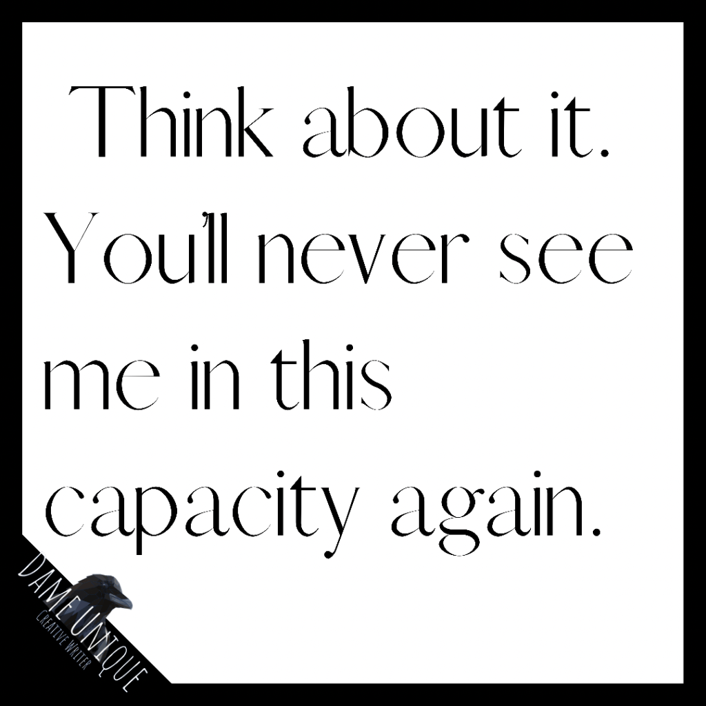 Today, she allowed her heart to open up and become the target. Her mind regurgitated memories of the lies he sang to her in the form of a unique connection and emotional bond.