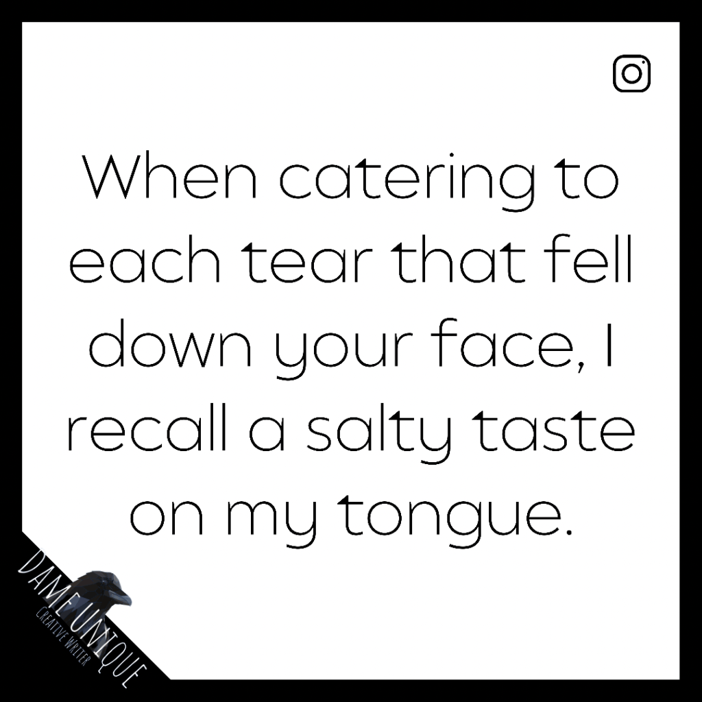Your lips move and echo your lies, with tears and pain on the hour. You snarl and snigger at your brilliant ways of manipulation. You play victim so well, yet you hold the knife perfectly, not even bothered about cross-contamination; you raise, and you stab. You stab, and you twist. You twist and assign blame, stating, ‘Your response made me do this.’